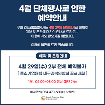 KPGA 대회로 인한 예약안내