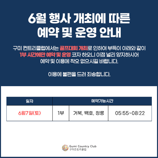 6월 행사 개최에 따른 예약 및 운영 안내