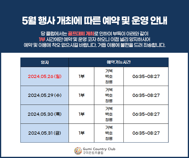5월행사 개최에 따른 예약 및 운영 안내