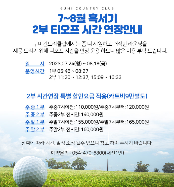 7~8월 혹서기 2부 티오프 시간 연장안내