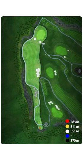 Tee에서 샷을 할 경우 Fairway의 폭이 좁아 보이지만 실제로는 그리 좁지 않은 홀 폭으로 설계되어 있으며 자연미를 충분히 살려 암과 잔디의 장점을 충분하게 살린 코스